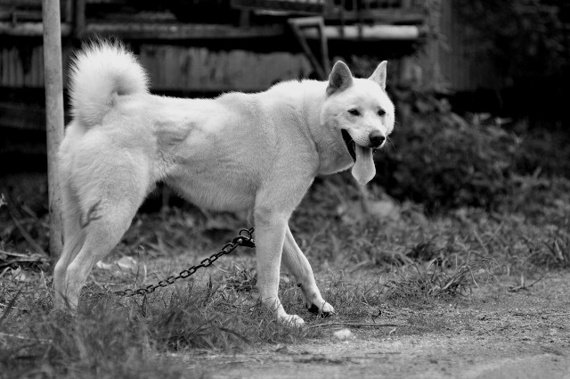 풍산개는 사냥감을 끝까지 쫒으며 싸우려는 끈기가 있습니다.